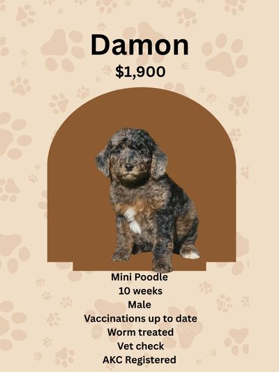 Note: Pictures of all puppies are taken within 7 days and updated weekly. Mini poodles are on average Between 10-15 pounds and about 10-15 inches tall at the Shoulder.