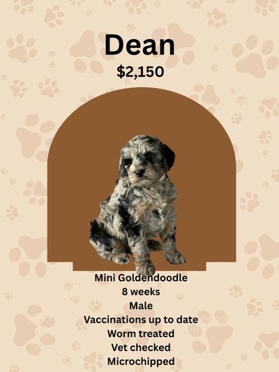 Note: Pictures of all puppies are taken within 7 days and updated weekly. Mini Goldendoodles are on average Between 15-35 pounds and about 13-20 inches tall at the Shoulder.