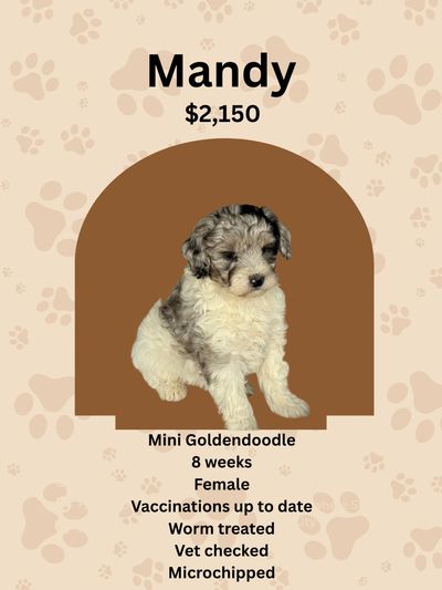 Note: Pictures of all puppies are taken within 7 days and updated weekly. Mini Goldendoodles are on average Between 15-35 pounds and about 13-20 inches tall at the Shoulder.