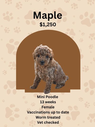 Note: Pictures of all puppies are taken within 7 days and updated weekly. Mini poodles are on average Between 10-15 pounds and about 10-15 inches tall at the Shoulder.