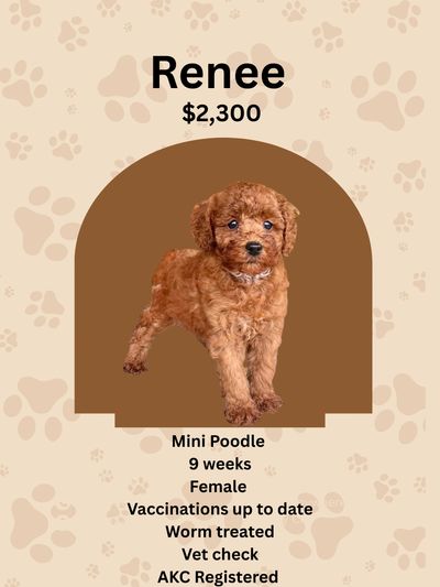 Note: Pictures of all puppies are taken within 7 days and updated weekly. Mini poodles are on average Between 10-15 pounds and about 10-15 inches tall at the Shoulder.