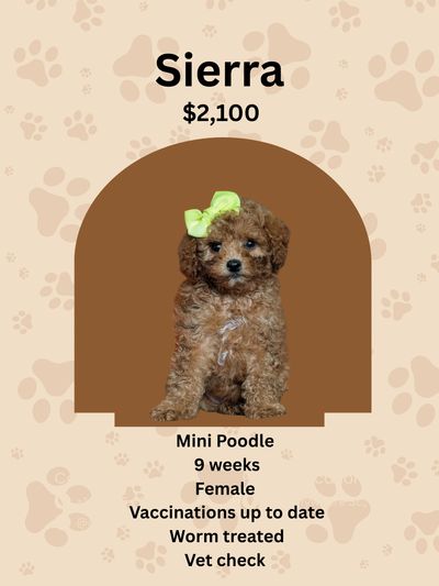 Note: Pictures of all puppies are taken within 7 days and updated weekly. Mini poodles are on average Between 10-15 pounds and about 10-15 inches tall at the Shoulder.