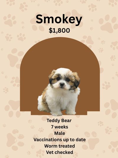 Note: Pictures of all puppies are taken within 7 days and updated weekly. Teddy Bear are on average Between 8-15 pounds and about 9-12 inches tall at the Shoulder.